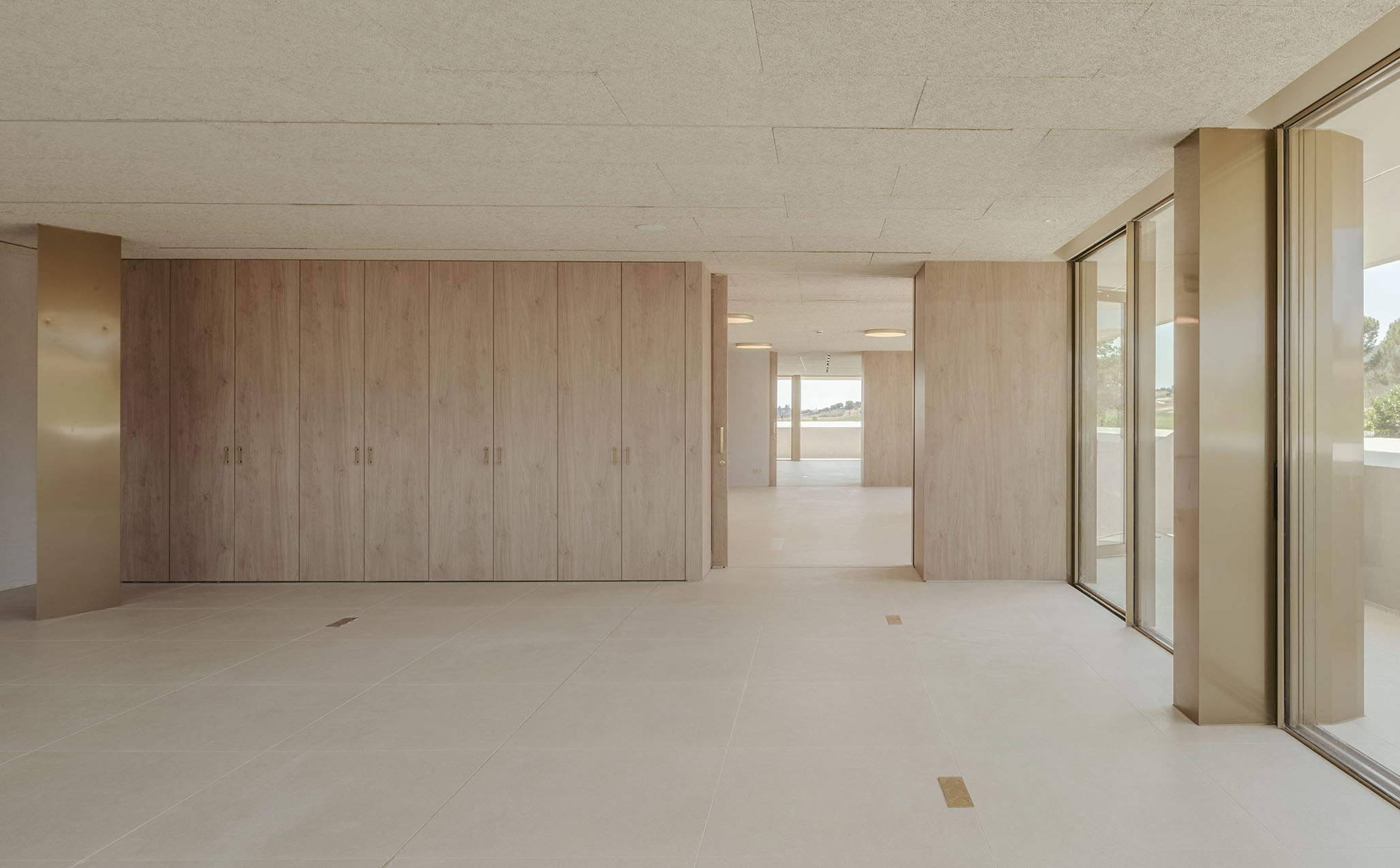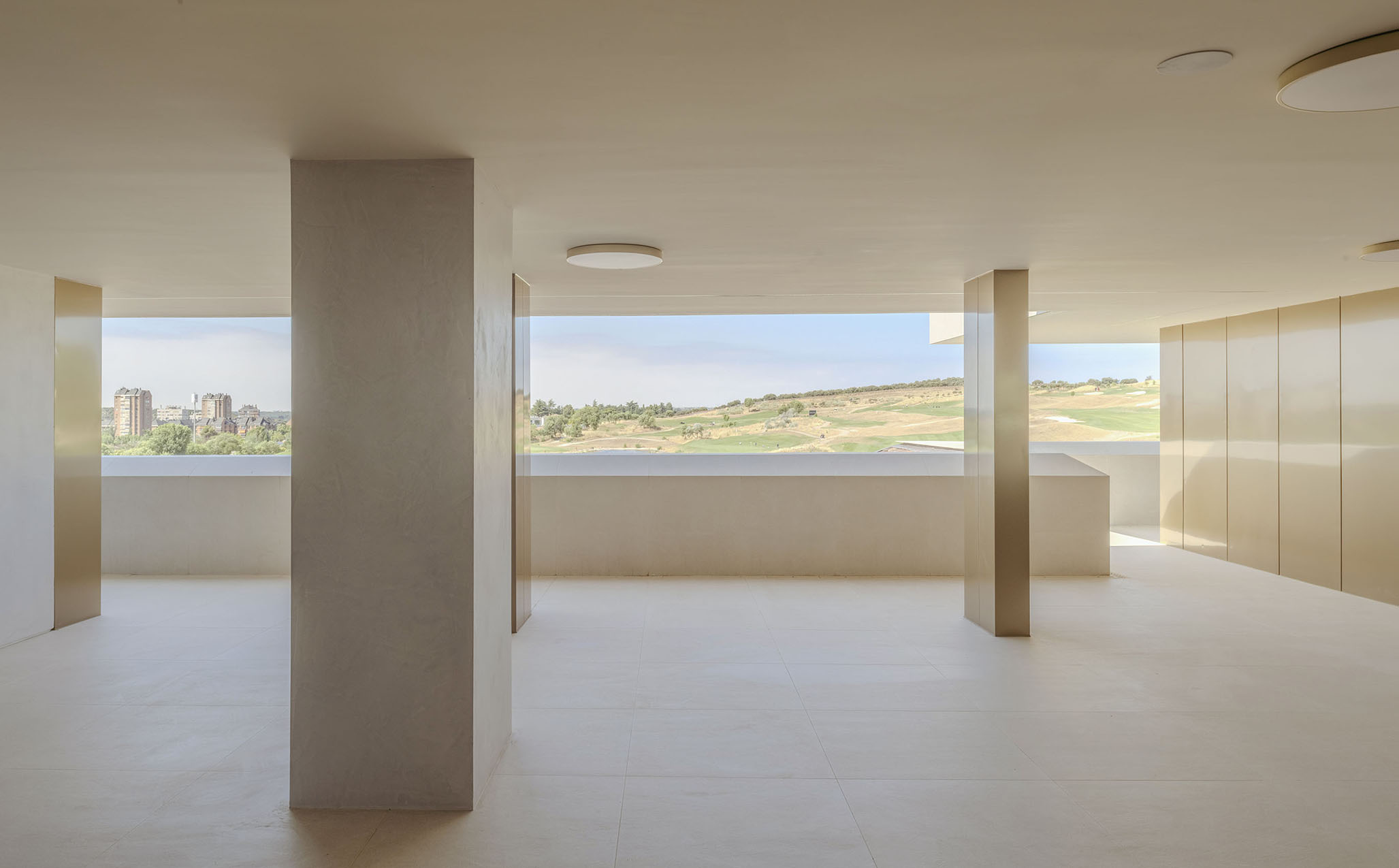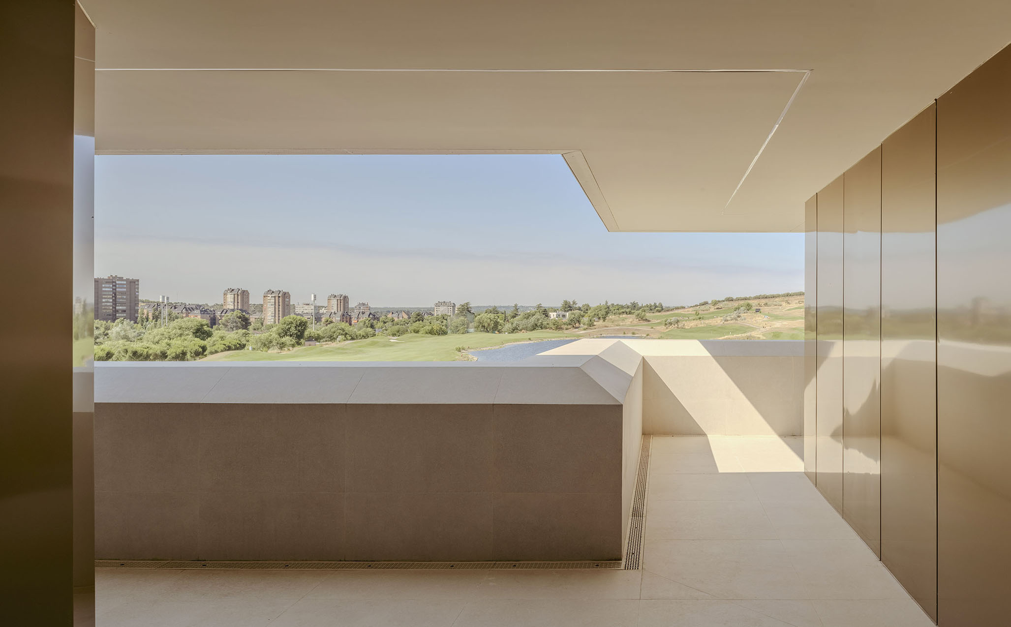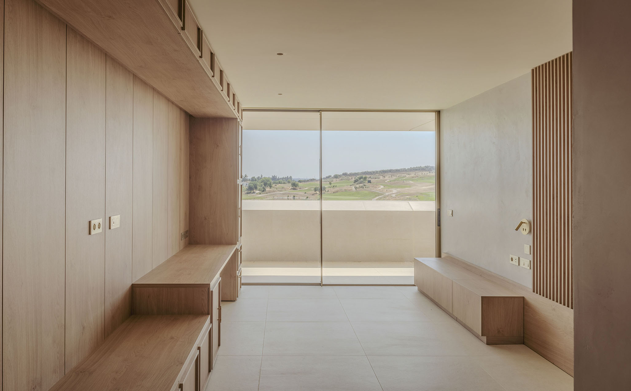 La construcción de una residencia deportiva de corta estancia para la Real Federación Española de Golf nos llevó a explorar con delicadeza la relación entre el espacio interior y un paisaje que, aunque lejano, se percibe siempre próximo. Desde esta premisa nace un perímetro habitado que establece un vínculo íntimo entre el joven golfista y ese horizonte verde que imagina como lugar de deseo.