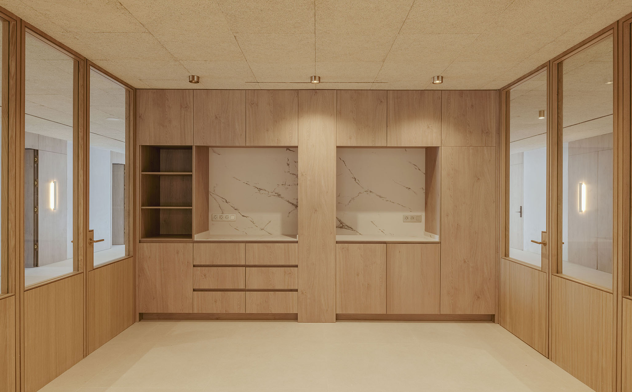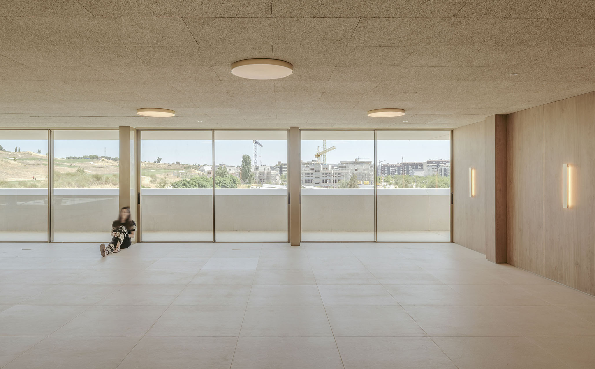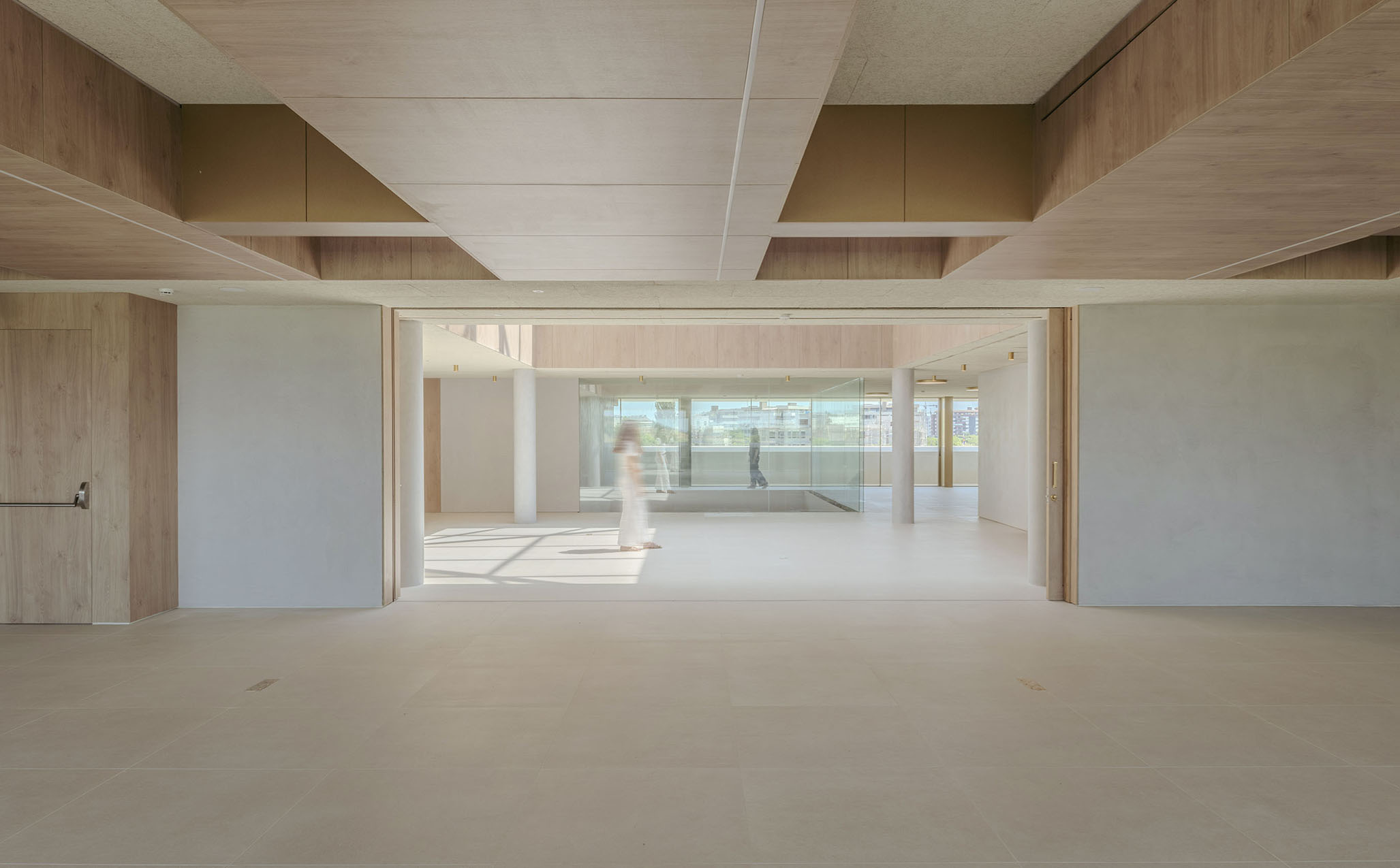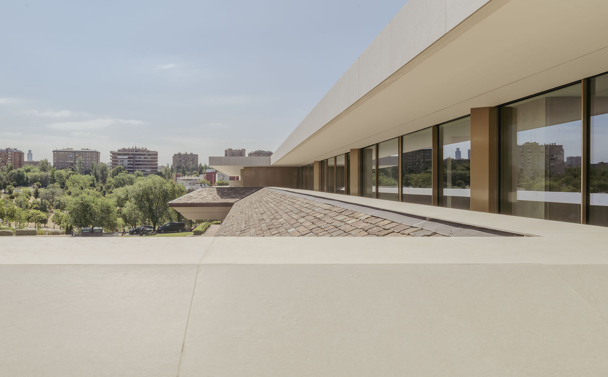 Una actuación rotunda, la apertura de una terraza a lo largo de todo el perímetro de la cubierta original del edificio, que llena de luz el antiguo bajocubierta, conectándolo con el exterior y dotándolo de nuevos usos.