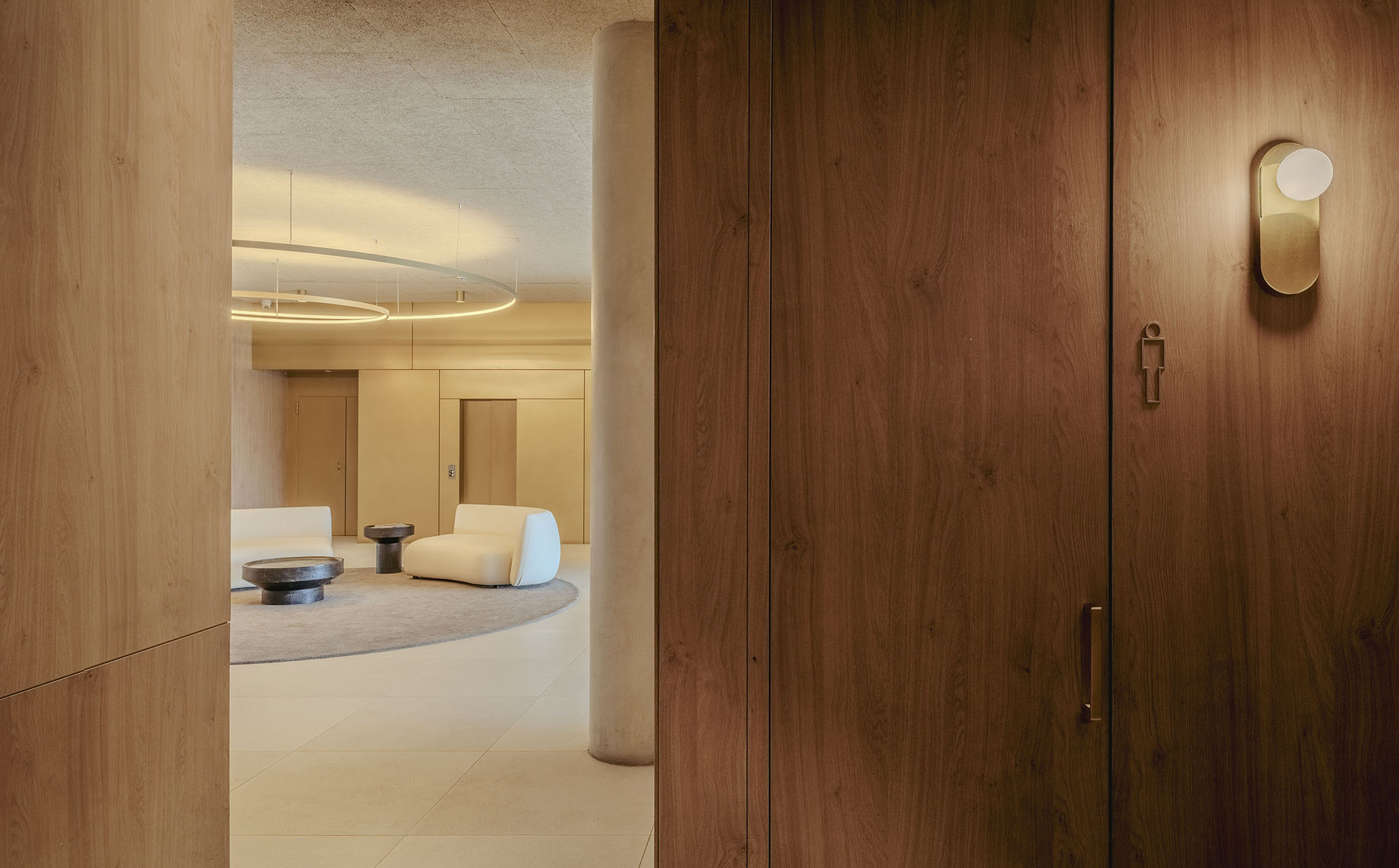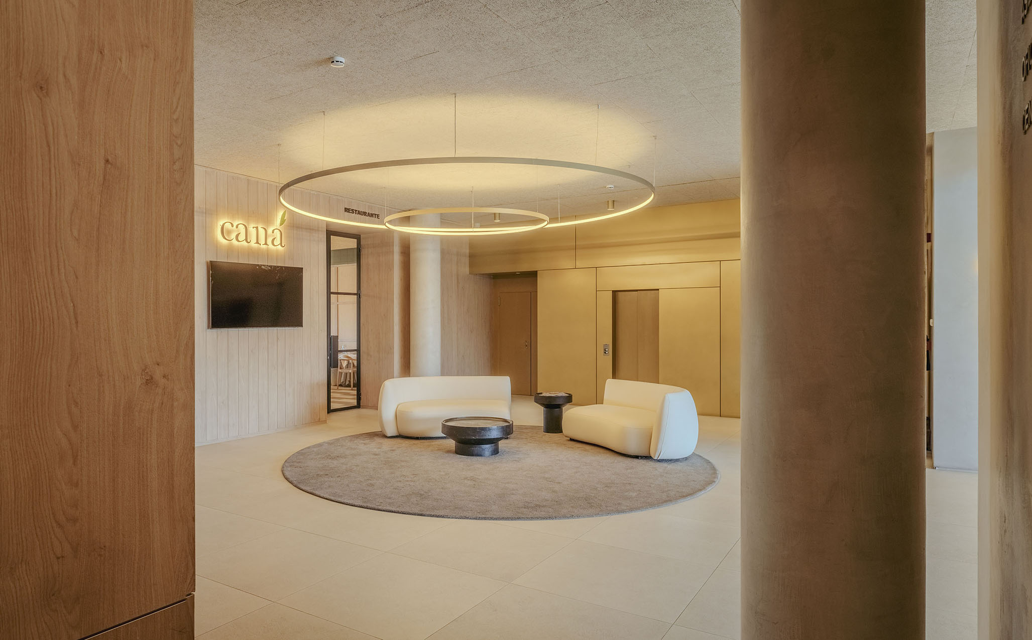 El resultado es un interior donde lo material adquiere un tono doméstico y cercano. Un vestíbulo que deja de ser sólo un tránsito obligado para convertirse en una pieza propia dentro de la experiencia arquitectónica del centro.
