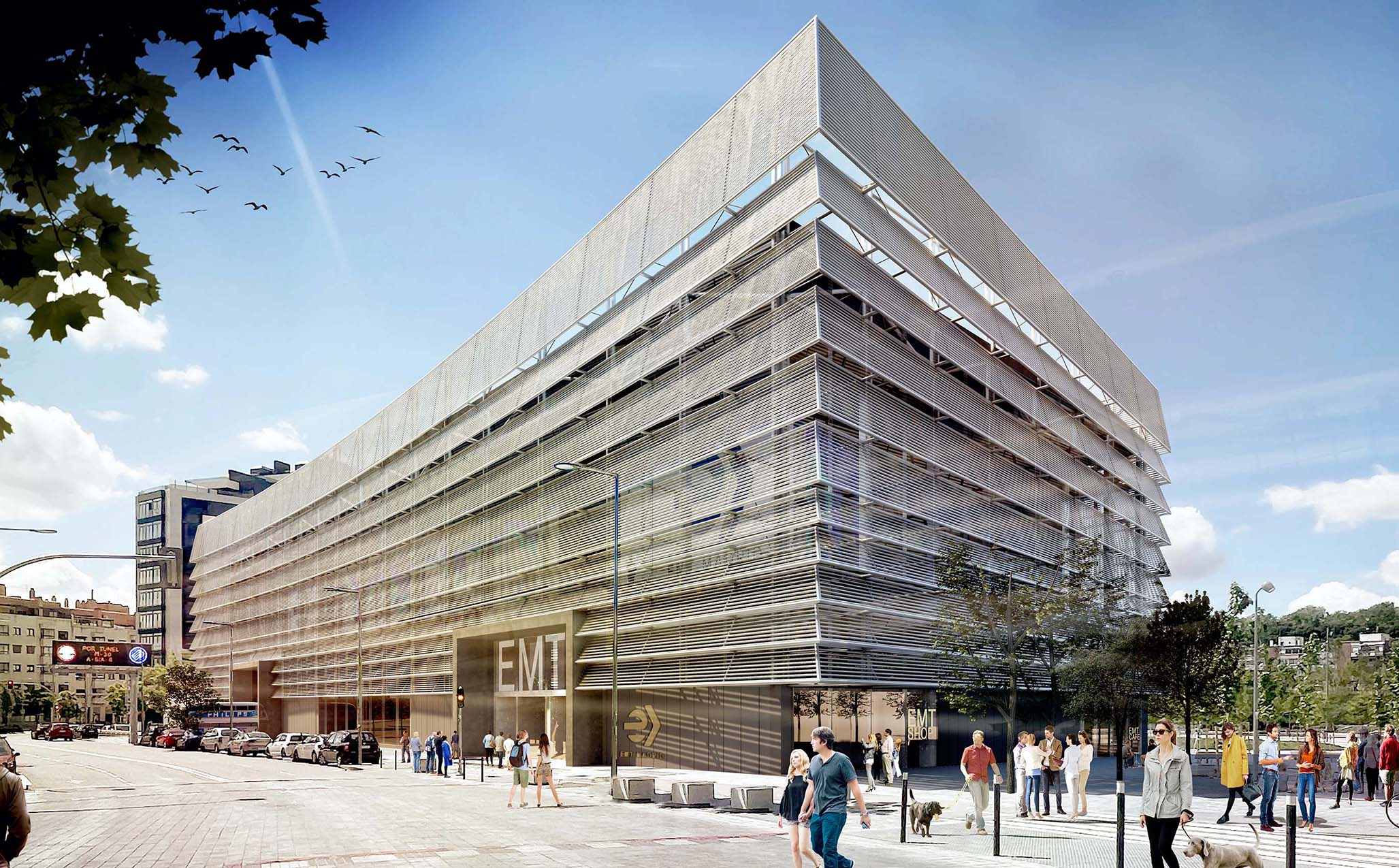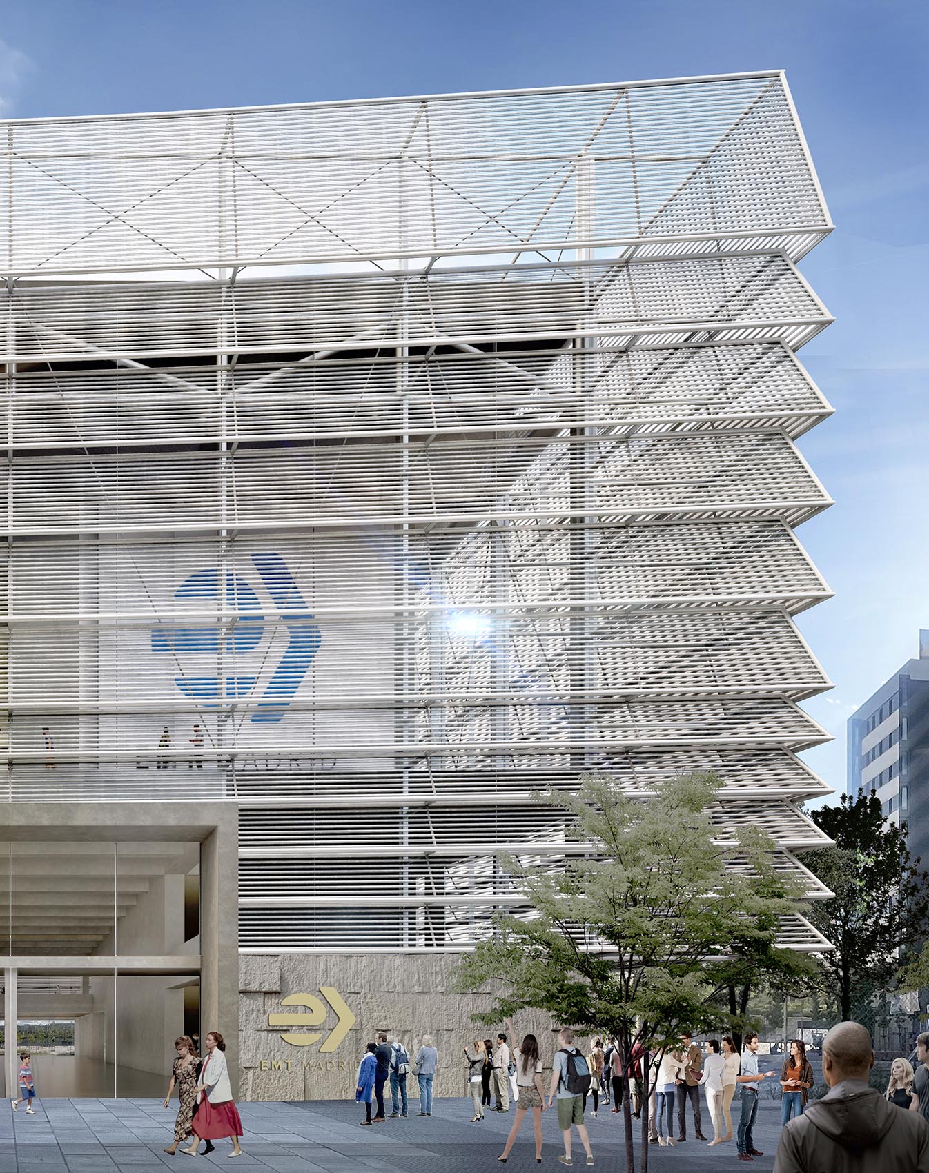Su fachada, atenta a las variaciones del entorno, actúa como un diafragma que hace levitar el volumen y establece un diálogo vivo entre la memoria del transporte madrileño y quienes lo recorren. Como la ventana de un vagón en movimiento, el edificio propone una experiencia en la que interior y exterior se acompañan mutuamente.